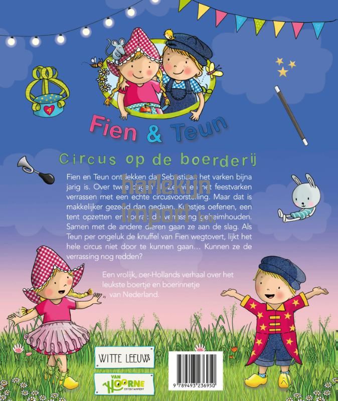 Fien en Teun komen erachter dat Sebastiaan bijna jarig is. Over twee dagen al! Ze willen het feestvarken een verrassingscircus geven. Maar dat is makkelijker gezegd dan gedaan. Al helemaal om het geheim te houden voor het nieuwsgierige varkentje. Samen met de andere dieren gaan ze aan de slag. Maar als Teun per ongeluk de knuffel van Fien wegtovert, lijkt het hele circus niet door te kunnen gaan… Kunnen ze de verrassing nog redden? Dit is het boek bij de film Fien & Teun - Circus op de boerderij. Een vrolijke, oer-Hollandse film voor het hele gezin, over het leukste boertje en boerinnetje van Nederland!