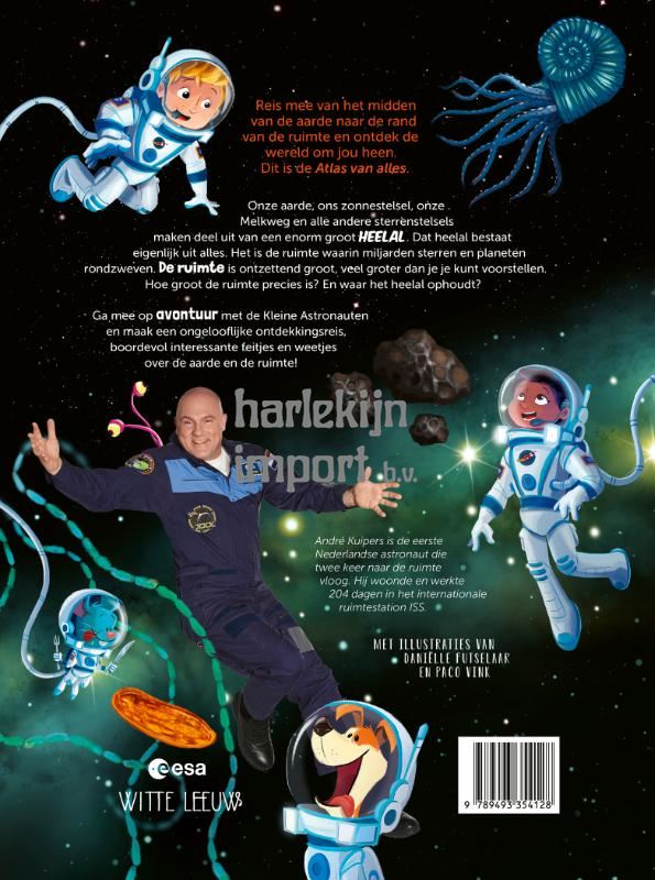 Onze aarde, ons zonnestelsel, onze Melkweg en alle andere sterrenstelsels maken deel uit van een enorm groot heelal. Dat heelal bestaat eigenlijk uit alles. Het is de ruimte waarin miljarden sterren en planeten rondzweven. De ruimte is ontzettend groot, veel groter dan je je kunt voorstellen. Hoe groot de ruimte precies is? En waar het heelal ophoudt? Ga mee op avontuur met de Kleine Astronauten en maak een ongelooflijke ontdekkingsreis! Reis mee van het midden van de aarde naar de rand van het heelal en ontdek de wereld om jou heen. Dit is de Atlas van alles. André Kuipers woonde en werkte in totaal 204 dagen in de ruimte. Sinds zijn terugkeer inspireert hij jong en oud met zijn belevenissen als astronaut. Met prachtige illustraties van Daniëlle Futselaar.
