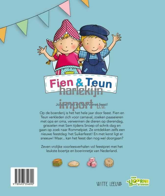 In Fien & Teun vieren feest lees je voorleesverhalen over het leukste boertje en boerinnetje van Nederland! In deze bundel met vrolijke, herkenbare verhalen vol kleur en gezelligheid vieren Fien & Teun de bekendste feesten die in Nederland door kinderen worden gevierd. Ze verkleden zich met carnaval, zoeken naar paaseieren, verwennen de dieren op dierendag, gaan langs de deuren met Halloween, zetten hun schoen met Sinterklaas en nog veel meer. En als een klasgenootje ze uitnodigt voor het Suikerfeest ontdekken ze ook een nieuwe feestdag. Ideaal voor peuters en kleuters die spelenderwijs kennis willen maken met verschillende tradities en feestdagen. Bekend van tv, theater en de Avonturenboerderij Molenwaard. Nu ook in een feestelijk voorleesboek voor thuis of in de klas.