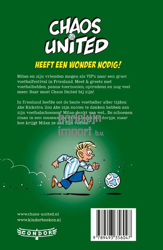 Milan en zijn vrienden mogen als VIP’s naar een groot voetbalfestival in Friesland. Meet & greets met voetbalhelden, panna-toernooien, optredens en nog veel meer. Daar moet Chaos bij zijn! In Friesland leefde ooit de beste voetballeraller tijden: Abe Kickstra. Deze legendarische voetballer kwam nooit verder dan de grenzen van zijn eigen dorp, dus is hij nauwelijks bekend in de rest van de wereld. Maar in Friesland is hij een ware held. Zou Abe zijn succes te danken hebben aan zijn voetbalschoenen? Milan denkt van wel. De schoenen staan in een museumpje in een piepklein dorpje, niet ver van waar Milan en zijn vrienden verblijven. Milan kan vast beter voetballen met deze bijzondere schoenen, maar hoe krijgt hij ze aan zijn voeten? Een vrolijk verhaal vol voetbal, Hollandse avonturen en grappige personages.