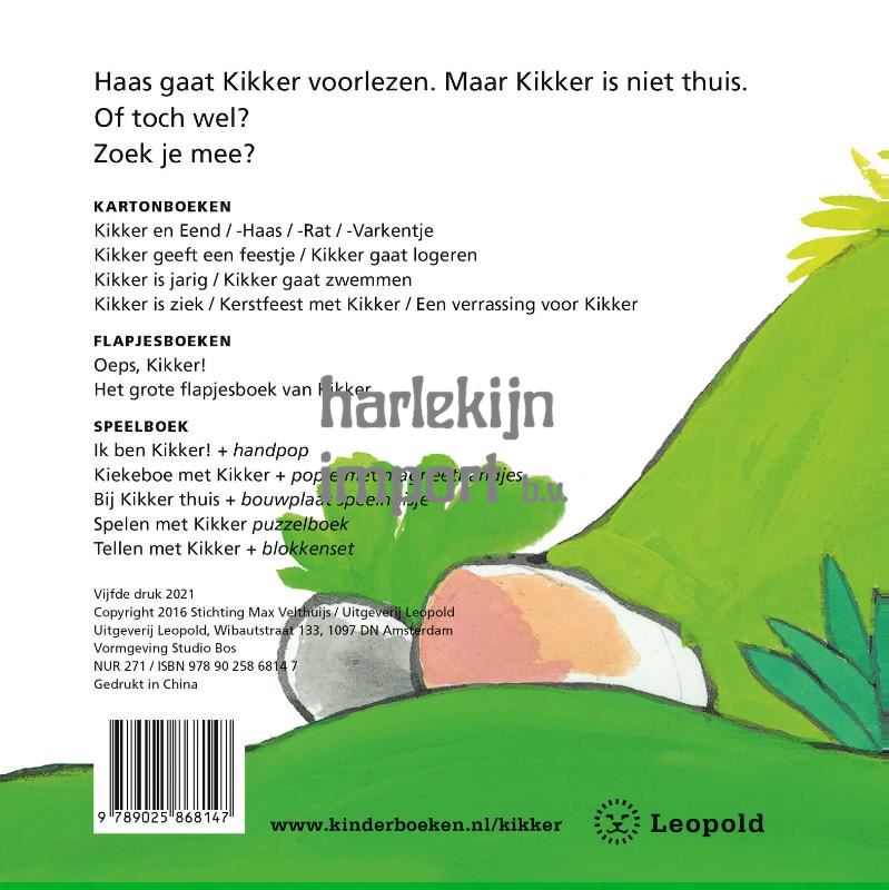 Haas gaat Kikker voorlezen. Maar Kikker is niet thuis.