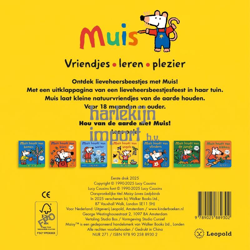 Muis houdt van lieveheersbeestjes is het nieuwe kartonboek van Lucy cousins. Ontdek lieveheersbeestjes en de natuur met Muis. Met een uitklappagina van een lieveheersbeestjesfeest in haar tuin. Muis laat kleine natuurvriendjes van de aarde houden. Voor 18 maanden en ouder.