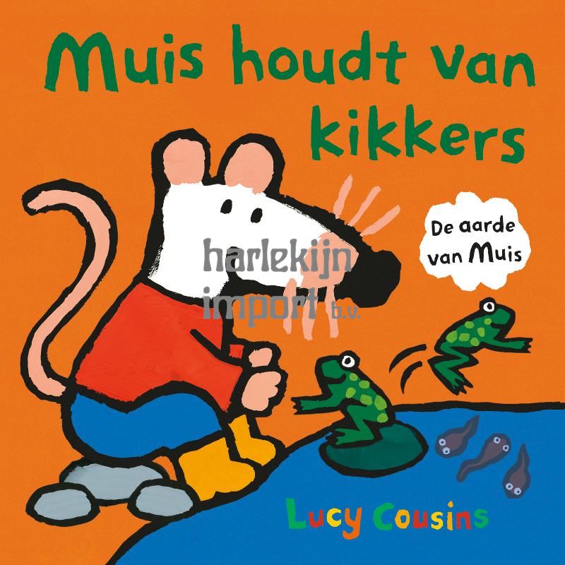 Leer over kikkers met Muis in Muis houdt van kikkers, het nieuwste kartonboek van Lucy Cousins. Muis vindt kikkers in de vijver. Leer met haar hoe ze eruitzien, hoe ze leven, wat een fijne plek voor hen is en hoe je voor hen kunt zorgen. Muis en haar vriendjes kunnen springen als een kikker en doen hun vrolijke geluiden na. Tijd voor een kikkersafari in het park! Met een uitklappagina van Muis en haar vriendjes bij de vijver. Voor 18 maanden en ouder.