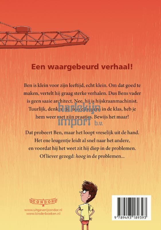 Ben is klein voor zijn leeftijd, echt klein. Om dat goed te maken kleurt hij de waarheid soms wat mooier dan hij is. Dus als de juf in de klas naar beroepen van ouders vraagt, is Bens vader geen saaie architect. Nee, hij is hijskraanmachinist. Tuurlijk, denken de stoere jongens in de klas, heb je hem weer met zijn grote verhalen. Bewijs het maar!