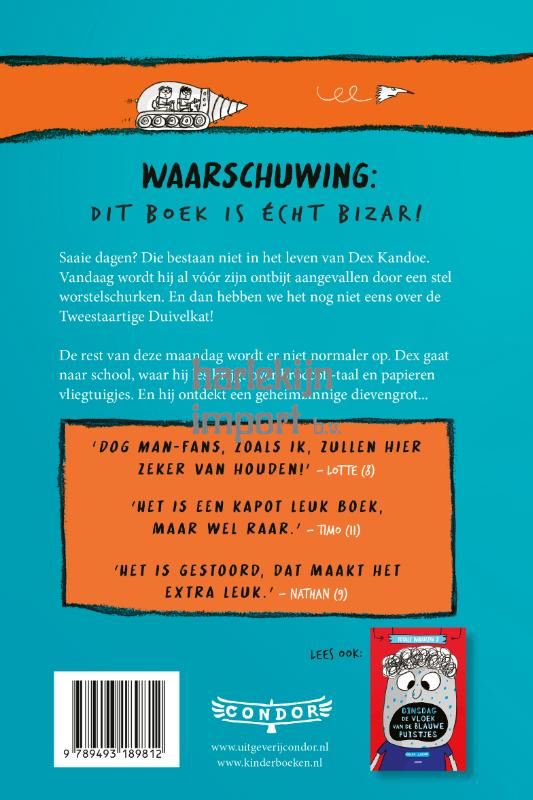 De rest van deze maandag wordt er niet normaler op. Dex gaat naar school, waar hij les krijgt over broccoli-taal en papieren vliegtuigjes. En hij ontdekt een geheimzinnige dievengrot…