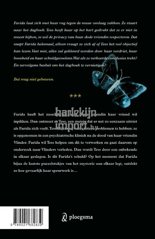 Farida heeft het moeilijk nu haar vriendje en beste vriendin meer tijd met elkaar doorbrengen dan met haar. Maar dan ontmoet ze Tess, een meisje dat er net zo eenzaam uitziet als Farida zich voelt. Tess is pas echt ongelukkig: ze is zelfs opgenomen in een psychiatrische kliniek. De meisjes vinden steun bij elkaar en algauw ontstaat er een hechte vriendschap tussen de twee. Farida is blij dat zij en Tess elkaar zo goed kunnen helpen. Maar waarom wordt ze aan alle kanten voor Tess gewaarschuwd? En wat is er precies gebeurd met Vlinder, de overleden vriendin van Tess?