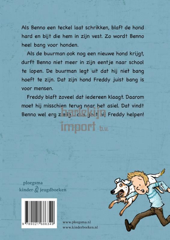 Op de markt laat Benno per ongeluk een teckel schrikken, die keihard begint te blaffen en hem in zijn vest bijt. Vanaf dat moment is hij heel bang voor honden. Zo bang, dat hij eigenlijk niet meer in zijn eentje naar school durft te lopen. Als zijn moeder op een dag meegaat, ziet Benno dat het tuinhek van een buurman openstaat. En die buurman heeft een hond! De buurman legt uit dat Benno niet angstig hoeft te zijn, omdat Freddy bang is voor mensen. Hij is zo schuw dat de buurman twijfelt of hij weer terug moet naar het asiel. Maar dat vindt Benno wel heel zielig… kan hij Freddy niet helpen? Zo ontstaat er een bijzondere vriendschap.