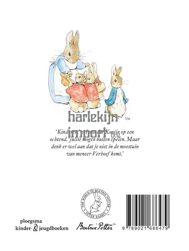 Het verhaal van Pieter Konijn is geschreven en geïllustreerd door Beatrix Potter. 'Kinderen,' zei moeder Konijn op een ochtend, 'jullie mogen buiten spelen. Maar denk er wel aan dat je niet in de moestuin van meneer Verhoef komt.' Maar de ondeugende Pieter Konijn peuzelt toch van de groenten van meneer Verhoef en kan maar ternauwernood aan diens pasteipot ontsnappen. Een klassiek verhaal, in een luxe uitvoering met stofomslag, uitgegeven zoals de originele uitgave.Heerlijk om voor te lezen en samen van te genieten.