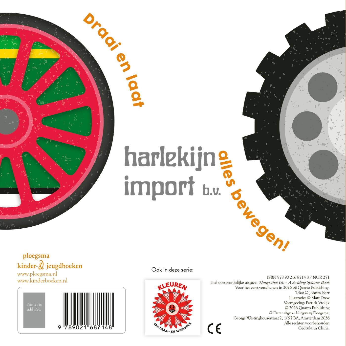 Dit kleurrijke kartonboek is leuk om mee te spelen, samen met je baby of peuter. Op elke spread vind je een draaiende spinner. Perfect voor de ontwikkeling van de fijne motoriek van jonge kinderen, en hun visuele waarneming. De woorden zijn eenvoudig, en de tekst is op rijm. Het contrastrijke ontwerp spreekt de allerkleinsten aan. In dezelfde serie is ook een boek over Kleuren verschenen. Samen lezen was nog nooit zo interactief!
