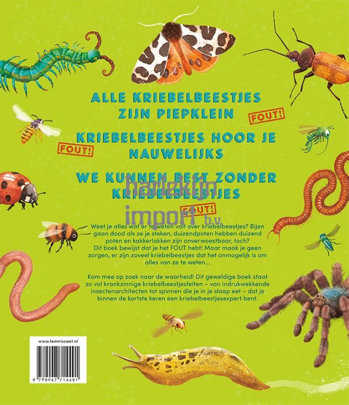 Word een kriebelbeestjesexpert! Weet jij alles wat er over kriebelbeestjes te weten valt? Ja toch zeker? Bijen gaan dood als ze je steken. Duizendpoten hebben duizend poten. Kakkerlakken zijn onverwoestbaar en vlinders komen uit een cocon. Duh… jou hoeven ze echt niets meer te vertellen. NOT! Alles wat je weet over kriebelbeestjes is FOUT! Dit boek ontmaskert alle onwaarheden. Ontdek hoe het écht zit met ongelofelijke insectenarchitecten,wormen die geen wormen zijn, spinnen die jouw mond niet in willen kruipen en nog veel meer. Dit boek krioelt van de kriebelfeiten over kriebelbeestjes en als je het uit hebt, weet je meer dan je wist dat je kon weten… en heb je gegiecheld, gegriezeld en genoten. Echt een boek voor alle leeftijden. Het vervolg op het succesvolle feitjesboek Alles wat je weet over dinosaurussen is FOUT!
