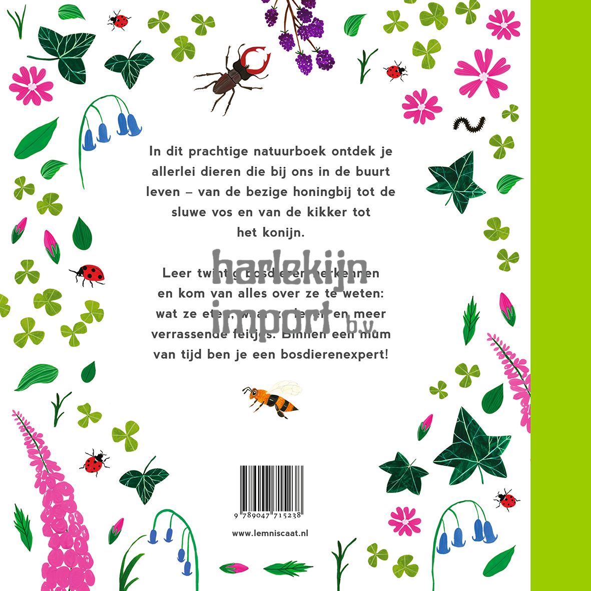 <p>Leer twintig bosdieren herkennen en kom van alles over ze te weten: wat ze eten, waar ze leven en meer verrassende feitjes. Binnen een mum van tijd ben je een bosdierenexpert! </p><p>In dit prachtige natuurboek ontdek je allerlei dieren die bij ons in de buurt leven – van de bezige honingbij tot de sluwe vos en van de kikker tot het konijn. </p><p>In dezelfde stijl als de andere delen uit deze favoriete serie zien we steeds een dier groot en herkenbaar getekend door Zoë Ingram, vergezeld door de belangrijkste feiten over het dier en steeds een bijzonder weetje. Dat een egel gemiddeld vijfduizend stekels heeft, bijvoorbeeld. Of dat een vos zijn staart als een sjaal om zich heen slaat om warm te blijven. Precies het soort informatie dat jonge kinderen verslinden.</p>