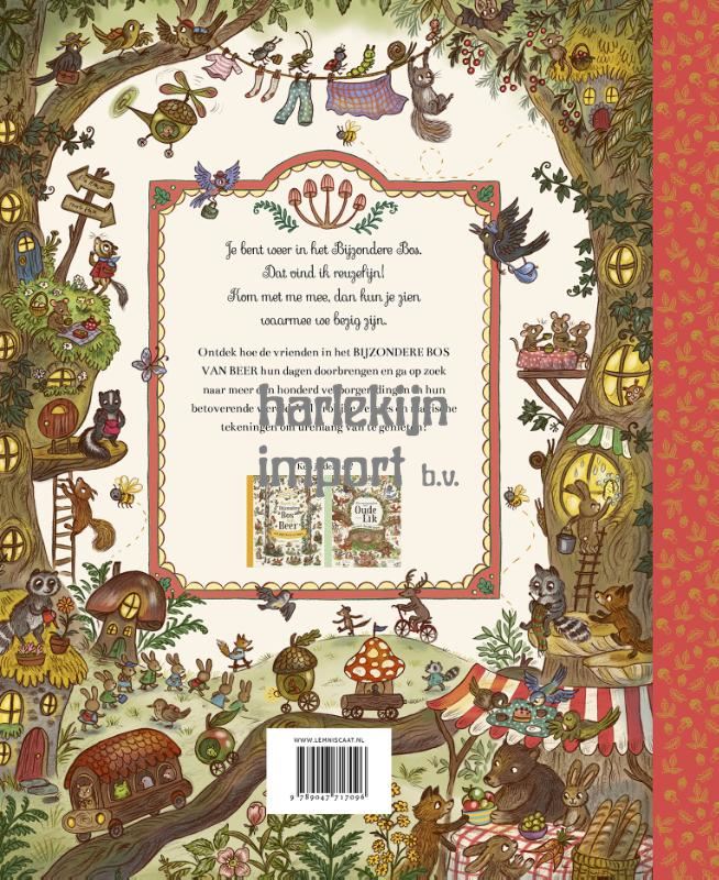 Ontdek hoe de vrienden in het Bijzondere Bos hun dagen doorbrengen en ga op zoek naar meer dan honderd verborgen dingen in de magische prenten van Freya Hartas. Een gloednieuw prentenboek van de makers van Het Bijzondere Bos van Beer. Bezoek de school, de bakker, de kruidenier en nog veel meer spannende plekken. Ontdek hoe Beer, Professor Uil, Mama Vos, Opa Pad en nog veel meer bekenden uit het bos ervoor zorgen dat alles goed gaat. Vol vrolijke voorleesgedichten en verborgen voorwerpen om urenlang van te genieten!