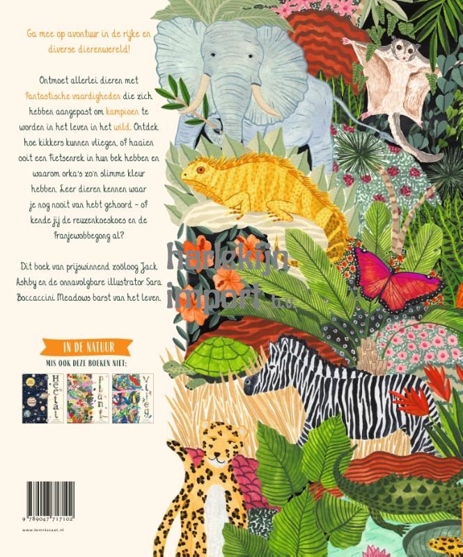 In Wild leidt de bekroonde dierenboekenschrijver Jack Ashby je langs talloze bijzondere dieren. Hij vertelt over de bijzondere wijze waarop ze zich aan hun omgeving hebben aangepast, over hun unieke kenmerken en gave talenten. Ontdek waarom de kameleon zo goed kan zien, wat een stekelvarken zo stekelig maakt, hoe een walvis een scherp gehoor ontwikkelde en nog veel meer. Je leert waar je de dieren kunt tegenkomen en op welke manier ze voorkomen in mythen en volksverhalen van over de hele wereld. Met de schitterende tekeningen van Sara Boccaccini Meadows is dit een dierenboek waar jong en oud van zullen genieten.