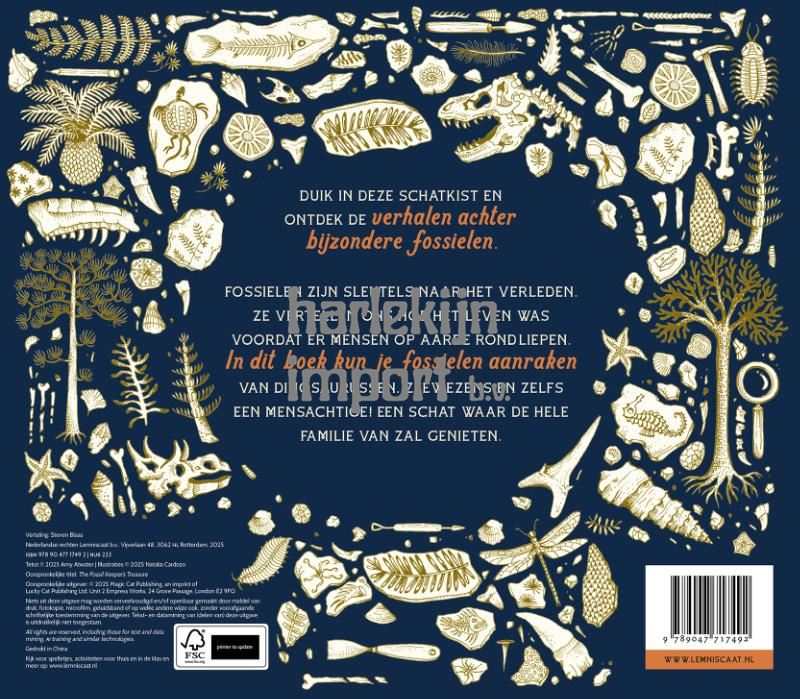 Ontdek in dit bijzondere boek van alles over fossielen. Deze schatten uit het verleden vertellen ons van alles over de dieren en planten die er vroeger leefden, lang voordat er mensen bestonden!Maak een reis door de tijd en ontdek een vis die op het land kon lopen, de Titaalik Rosaea, de hagedissenkoning T. rex, onze menselijke voorouder Lucy en nog veel meer. De fossielen zijn in reliëf gedrukt, dus je kunt ze echt aanraken. Een lust voor het oog én voor de vingers van elke paleontoloog in de dop!