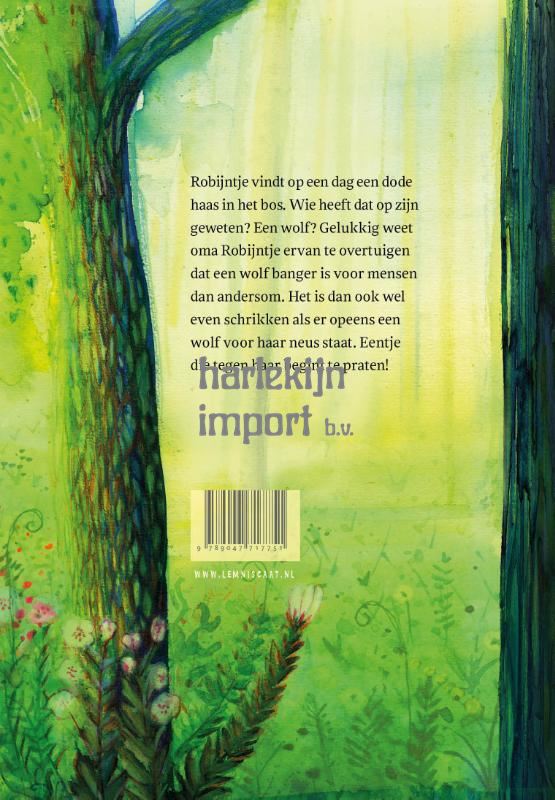 Robijntje vindt op een dag een dode haas in het bos. Wie heeft dat op zijn geweten? Een wolf?Gelukkig weet oma Robijntje ervan te overtuigen dat een wolf banger is voor mensen dan andersom. Het is dan ook wel even schrikken als er opeens een wolf voor haar neus staat. Eentje die tegen haar begint te praten! Robijntje weet het niet goed.Is ze bang?Nee, niet echt.In het begin wel even,maar daarna niet meer.Fijn vindt ze het niet.Wel heel erg vreemd.En wat zal oma ervan vinden?Een wolf die kan praten! Maar oma gelooft Robijntje niet… En de jager vindt dat elke wolf moet worden neergeschoten. Dat lijkt Robijntje geen goed idee. In het vrolijke sprookje van Saskia de Jong neemt Robijntje het heft in handen. De kleurrijke tekeningen van Anna Boterman vullen het verhaal aan tot een verrukkelijk voorleesverhaal of eerste leesboek.