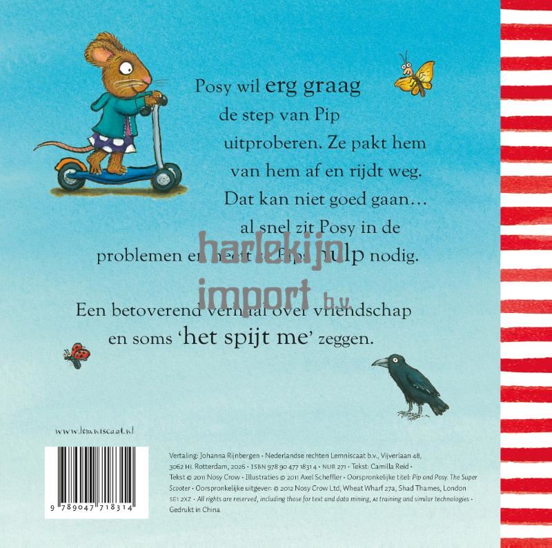 Pip en posy zijn peuters die het leven leren kennen. In hun serie verhalen komen alle aspecten – de leuke en de lastige – op een vrolijke manier aan bod. En het loopt altijd goed af. In De superstep pakt Posy stiekem de step van Pip. En daarmee maakt ze een lelijke val. Gelukkig is Pip een goede vriend en troost hij haar. De boeken van Pip en Posy zijn ideaal voor alle peuters en hun ouders! Er zullen nog meer boeken in de serie (her)uitgegeven worden.