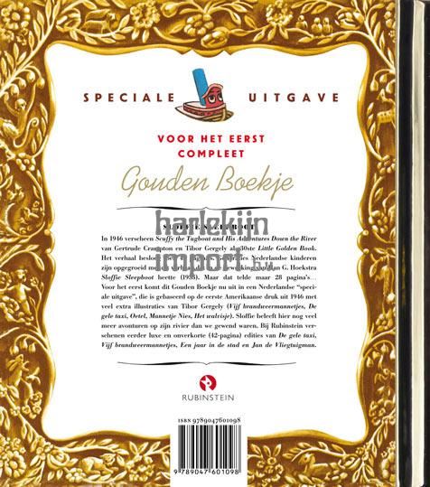 In 1946 verscheen Scuffy the Tugboat and His Adventures Down the River van Gertrude Cramptoin en Tibor Gergely als 30ste Little Golden Book. Het verhaal besloeg toen 42 pagina's. generaties Nederlandse kinderen zijn opgegroeid met dit verhaal, dat in de bewerking van Han G. Hoekstra Sloffie Sleepboot heette (1955). Maar dat telde maar 28 pagina's....Voor het eerst komt dit Gouden Boekje nu uit in een Nederlandse "speciale uitgave", die is gebaseerd op de eerste Amerikaanse druk uit 1946 met veel extra illustraties van Tibor Gergely. Sloffie beleeft hier nog veel meer avonturen op zijn rivier dan we gewend waren.