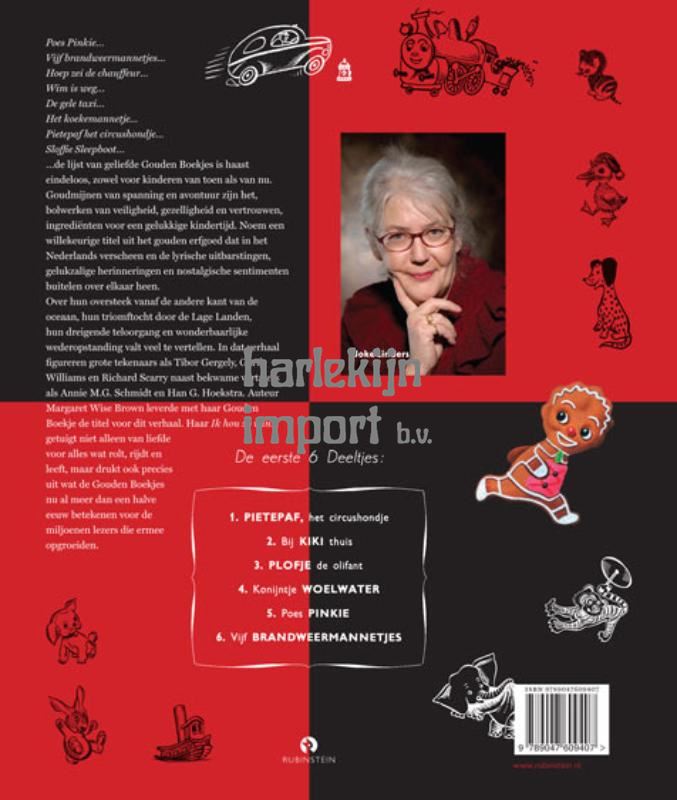 Over hun oversteek vanaf de andere kant van de oceaan, hun triomftocht door de Lage Landen, hun dreigende teloorgang en wonderbaarlijke wederopstanding valt veel te vertellen. In dat verhaal figureren grote tekenaars als Tibor Gergely, Garth Williams en Richard Scarry naast bekwame vertalers als Annie M.G. Schmidt en Han G. Hoekstra. Auteur Margaret Wise Brown leverde met haar Gouden Boekje de titel voor dit verhaal. Haar Ik hou zo van… getuigt niet alleen van liefde voor alles wat rolt, rijdt en leeft, maar drukt ook precies uit wat de Gouden Boekjes nu al meer dan een halve eeuw betekenen voor de miljoenen lezers die ermee opgroeiden.