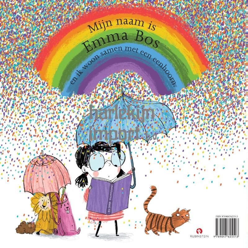 Ben jij een eenhoornexpert? Maak dan kennis met Emma Bos... Jullie hebben veel gemeen! Emma bos is een aandoenlijk nieuw prentenboekkarakter. Ze barst gewoon van informatie en kennis die ze graag wilt delen. Ze heeft zichzelf bestempeld tot eenhoornexpert en heeft al haar speelgoedknuffels en huisdieren verkleed met hun eigen unieke hoorns. Wel vreemd dan dat ze niets doorheeft als er een échte eenhoorn haar huis komt binnenwandelen.