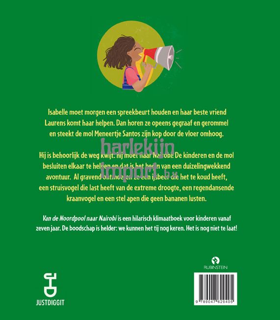 Op ludieke wijze vertellen cabaretiers en auteurs Yannick van de Velde en Bart van den Donker een optimistisch verhaal over de hedendaagse milieuproblematiek. Belangrijke thema’s komen aan bod zoals biodiversiteit en de opwarming van de aarde. De boodschap is helder: we kunnen het tij nog keren. Het is nog niet te laat! Isabelle moet morgen een spreekbeurt houden. Haar beste vriend Laurens komt haar helpen. Dan horen ze opeens gegraaf en gerommel en steekt de mol Meneertje Santos zijn kop door de vloer omhoog. Hij is behoorlijk de weg kwijt: hij moet naar Nairobi! De kinderen en de mol besluiten elkaar te helpen en dat is het begin van een duizelingwekkend avontuur. Al gravend ontmoeten ze een ijsbeer die het te koud heeft, een struisvogel die last heeft van de extreme droogte, een regendansende kraanvogel en een stel apen die geen bananen lusten.