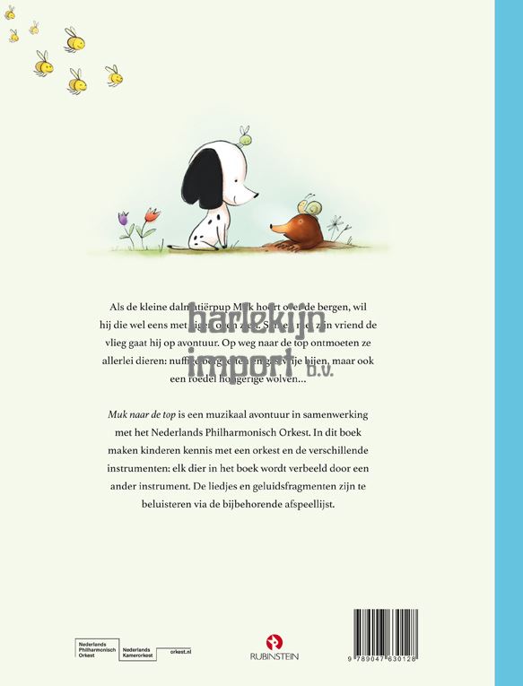Een muzikaal boek over de kleine dalmatiƫrpup Muk. Als Muk hoort over de bergen, wil hij die wel eens met eigen ogen zien. Samen met zijn vriend de vlieg gaat hij op avontuur. Op weg naar de top ontmoeten ze allerlei dieren: nuffige berggeiten en gastvrije bijen, maar ook een roedel hongerige wolven. Muk naar de top verschijnt bij de gelijknamige (school)voorstelling door het Nederlands Philharmonisch Orkest, waarin kinderen kennismaken met een orkest en de verschillende instrumenten.