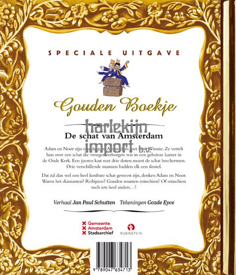 Adam en Noor z?n een dagje in Amsterdam met tante Winnie. Ze vertelt hen over een schat die vroeger verborgen was in een geheime kamer in de Oude Kerk. Een ?zeren kast met drie sloten moest de schat beschermen. Drie verschillende mannen hadden elk een sleutel. Dat zal dan wel een heel kostbare schat geweest z?n, denken Adam en Noor. Waren het diamanten? Rob?nen? Gouden munten misschien? Of misschien toch iets heel anders? Dit Gouden Boekje neemt je mee op reis door de geschiedenis van Amsterdam!