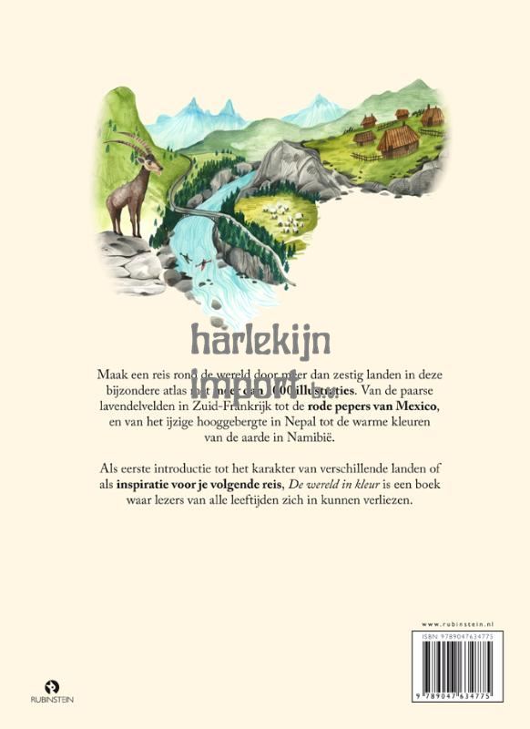 Maak een reis rond de wereld door meer dan zestig landen in deze bijzondere atlas met meer dan 1000 illustraties. Van de paarse lavendelvelden in Zuid-Frankrijk tot de rode pepers van Mexico, en van het ijzige hooggebergte in Nepal tot de warme kleuren van de aarde in Namibiƫ. Als eerste introductie tot het karakter van verschillende landen of als inspiratie voor je volgende reis, De wereld in kleur is een boek waar lezers van alle leeftijden zich in kunnen verliezen.