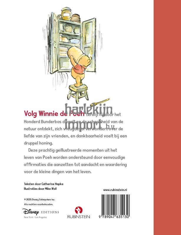 Volg Winnie de Poeh terwijl hij door zijn dag wandelt en ontdekt hoe de schoonheid van de natuur, de momenten met zijn vrienden en de vreugde van een druppel honing verwondering en dankbaarheid kunnen oproepen. Dit prachtig geïllustreerde boek voor jong en oud is een aanmoediging om na te denken over hoe de kleine dingen in het leven geluk kunnen brengen.