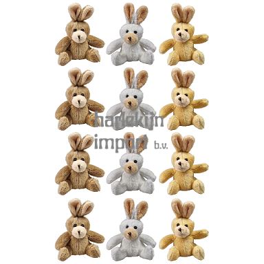Knuffels Konijntjes. 3 ass. 12 cm. (In polybag, 12 stuks) |