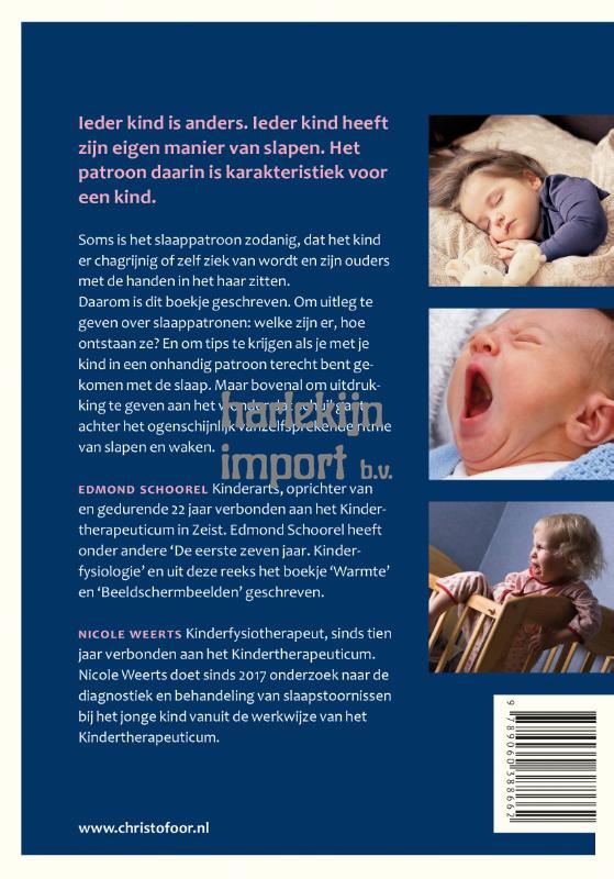 Slapen doen we allemaal. Over het belang van voldoende slaap (voor volwassene én kind) is steeds meer bekend, als ook over de mogelijke gevolgen als we langere tijd aan een slaaptekort lijden. Slaap zorgt er niet alleen voor dat we herstellen van onze dagelijkse bezigheden, maar ook voor onze lichamelijke weerstand, onze mentale weerbaarheid, ons leer- en ontwikkelingsvermogen en het hebben en behouden van een gezond lichaamsgewicht. Slapen moet je leren. Een zuigeling leert door het dag-nachtritme van de ouders een eigen ritme te ontwikkelen. Een peuter ontwikkelt een eigen slaapritme door bedrituelen en gewoontes. Zo hoort bij iedere fase in de algemene kinderlijke ontwikkeling ook de ontwikkeling van de slaappatronen. Als deze ontwikkeling niet vanzelf gaat, kunnen slaapproblemen ontstaan. Vanuit de levensloopontwikkeling ‘van zuigeling tot adolescent’ wordt de lezer meegenomen in de slaapontwikkeling en het ontstaan van mogelijke slaapproblemen. Het boek biedt eenvoudige aanbevelingen om deze problemen te voorkomen en praktische adviezen om ze op te lossen.