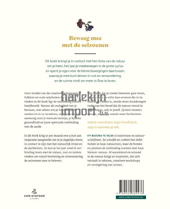 Dit boek brengt je in contact met het ritme van de natuur om je heen, het laatje meebewegen in de grote cyclus en opent je ogen voor de kleine bewegingen daartussen, waarop je mee kunt deinen in rust en verwondering, en de ruimte vindt om meer in flow te leven. In dit boek krijg je per maand een schat aan inspiratie aangereikt om in je dagelijks leven in contact te zijn met het natuurlijk ritme en de jaarfeesten. Zo kun je het jaar rond in verbinding leven met de natuur, rust en ruimte vinden om vanuit bezinning en verwondering de seizoenen mee te beleven. Dat maakt dat je steeds bewuster gaat leven, steeds meer de stilte kan ervaren die in de natuur te vinden is, steeds meer doordrongen raakt van het besef dat de natuur overal in aanwezig is, ook in jezelf. Jij bent immers natuur, dat zal je steeds meer herkennen. Iedere maand een eigen hoofdstuk, stap in wanner je wilt.