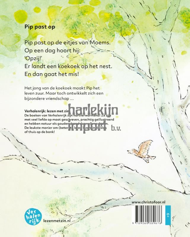 Pip past op de eitjes van Moems. Op een dag hoort hij: ‘Opzij!’ Er landt een koekoek op het nest. En dan gaat het mis! Het jong van de koekoek maakt Pip het leven zuur. Maar toch ontwikkelt zich een bijzondere vriendschap… Verhalenrijk staat garant voor hartverwarmende zelfleesboekjes! Ze zijn met veel liefde op maat geschreven, prachtig geïllustreerd en hebben natuur als gouden draad door alle verhalen. Ze zijn prima los te lezen en wie er meer leest zal karkaters en thema's herkennen. De leukste manier om (beter) te leren lezen, in de klas of thuis op de bank!