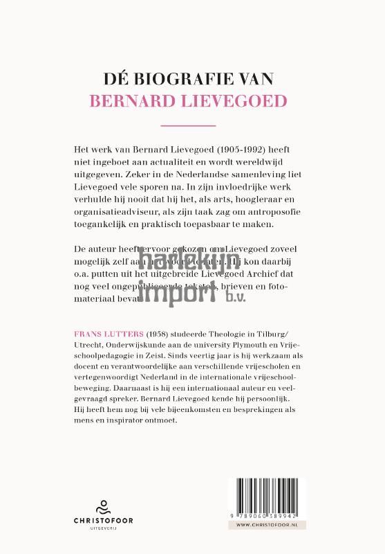 Het werk van Bernard Lievegoed (1905-1992) heeft niet ingeboet aan actualiteit en wordt wereldwijd uitgegeven. Zeker in de Nederlandse samenleving liet Lievegoed vele sporen na. In zijn invloedrijke werk verhulde hij nooit dat hij het, als arts, hoogleraar en organisatieadviseur, als zijn taak zag om antroposofie toegankelijk en praktisch toepasbaar te maken. De auteur heeft ervoor gekozen om Lievegoed zoveel mogelijk zelf aan het woord te laten. Hij kon daarbij o.a. putten uit het uitgebreide Lievegoed Archief dat nog veel ongepubliceerde teksten, brieven en fotomateriaal bevat.