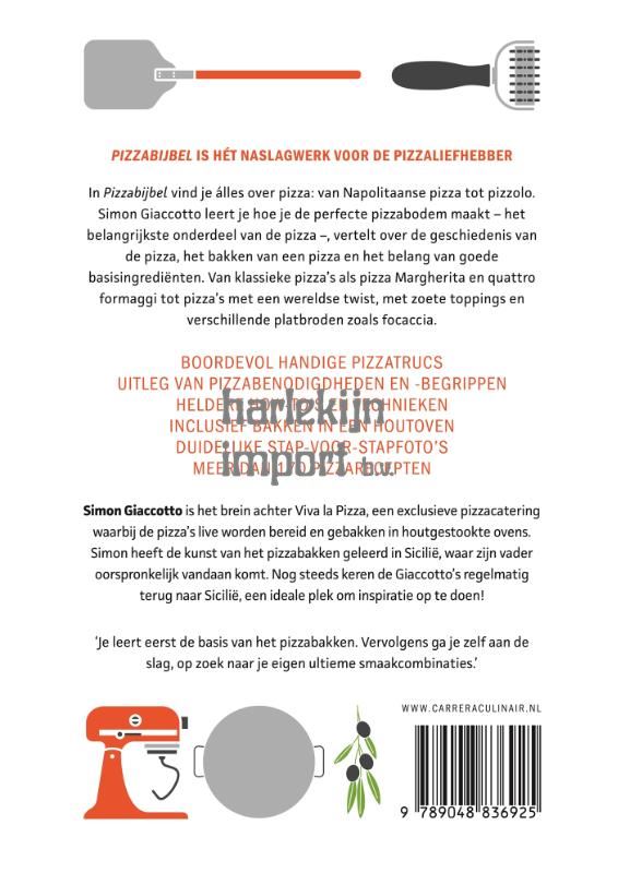In de Pizzabijbel vind je álles over pizza: van Napolitaanse pizza tot pizzolo. Simon Giaccotto leert je hoe je de perfecte pizzabodem maakt - het belangrijkste onderdeel van de pizza -, vertelt over de geschiedenis van de pizza, het bakken van een pizza en het belang van goede basisingrediënten. In de Pizzabijbel vind je niet alleen klassieke pizza's als pizza Margherita en quattro formaggi, maar ook pizza's met zoete toppings en verschillende platbroden zoals focaccia.