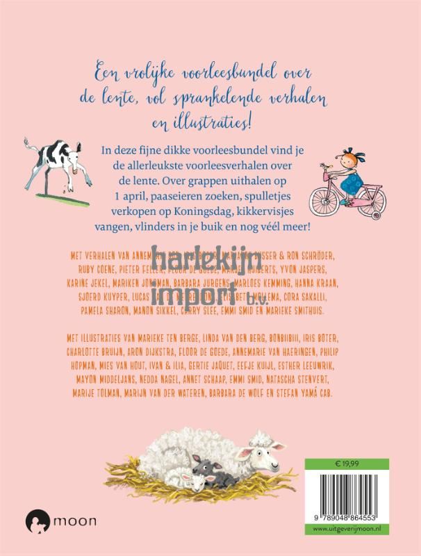 In deze fijne dikke voorleesbundel vind je de allerleukste voorleesverhalen over de lente. Over spullen verkopen op Koningsdag, lammetjes in de wei, lentekriebels, grappen uithalen op 1 april en paaseieren zoeken. En nog véél meer!