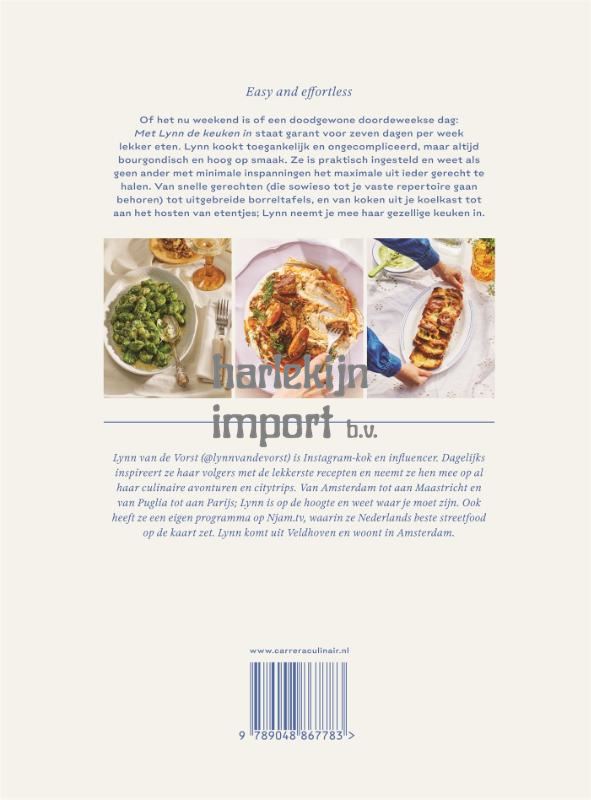 Of het nu weekend is of een doodgewone doordeweekse dag: <i>Met Lynn de keuken in</i> staat garant voor zeven dagen per week lekker eten. Lynn kookt toegankelijk en ongecompliceerd, maar altijd bourgondisch en hoog op smaak. Ze is praktisch ingesteld en weet als geen ander met minimale inspanningen het maximale uit ieder gerecht te halen. Van snelle gerechten (die sowieso tot je vaste repertoire gaan behoren) tot uitgebreide borreltafels, en van koken uit je koelkast tot aan het hosten van etentjes; Lynn neemt je mee haar altijd zo gezellige keuken in.
