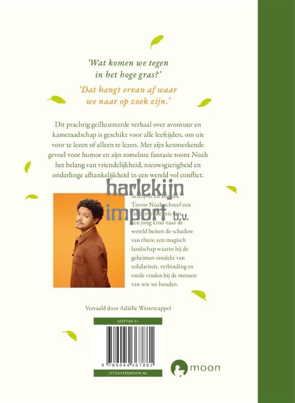 'Wat komen we tegen in het hoge gras?' 'Dat hangt ervan af waar we naar op zoek zijn.' Dit prachtig geïllustreerde verhaal over avontuur en kameraadschap is geschikt voor alle leeftijden, om uit voor te lezen of alleen te lezen. Met zijn kenmerkende gevoel voor humor en zijn tomeloze fantasie toont Noah het belang van vriendelijkheid, nieuwsgierigheid en onderline afhankelijkheid in een wereld vol conflict. Schrijver en komiek Trevor Noah schreef een fabel over de reis van een jong kind naar de wereld buiten de schaduw van thuis; een magisch landschap waarin hij de geheimen ontdekt van solidariteit, verbinding en vrede vinden bij de mensen van wie we houden. Vertaald door Adiëlle Westercappel