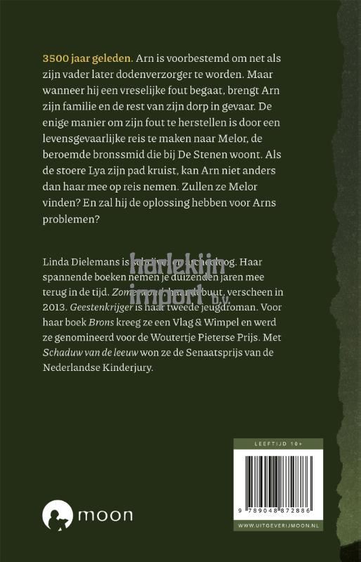 3500 jaar geleden... Arn is voorbestemd om net als zijn vader later dodenverzorger te worden. Maar wanneer hij een vreselijke fout begaat, brengt Arn zijn familie en de rest van zijn dorp in gevaar. De enige manier om zijn fout te herstellen is door een levensgevaarlijke reis te maken naar Melor, die bij De Stenen woont. Onderweg raakt Arn verstrikt in zijn eigen leugens. Als de stoere Lya zijn pad kruist, kan hij niet anders dan haar mee op reis nemen. Zullen ze Melor vinden? En zal de beroemde bronssmid de oplossing hebben voor zijn problemen?