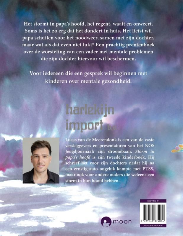 Het stormt in papa's hoofd, het regent, waait en onweert. Soms is het zo erg dat het dondert in huis. Het liefst wil papa schuilen voor het noodweer, samen met zijn dochter, maar wat als dat even niet lukt? Een prachtig prentenboek over de worsteling van een vader met mentale problemen die zijn dochter hiervoor wil beschermen, gebaseerd op persoonlijke ervaring.