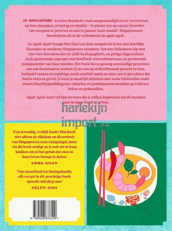In Agak Agak brengt Shu Han Lee deze aanpak tot leven met heerlijke klassieke en moderne Singaporese recepten. Van een Hainanese kip met rijst voor doordeweeks tot chili-krabspaghetti, en pittige bijgerechten zoals gestoomde asperges met knoflook-zwartebonensaus en gestoomde pompoenrijst van haar moeder. Het boek bevat genoeg eenvoudige gerechten om een feestmaal te creƫren of als een op zichzelfstaand gerecht te eten.