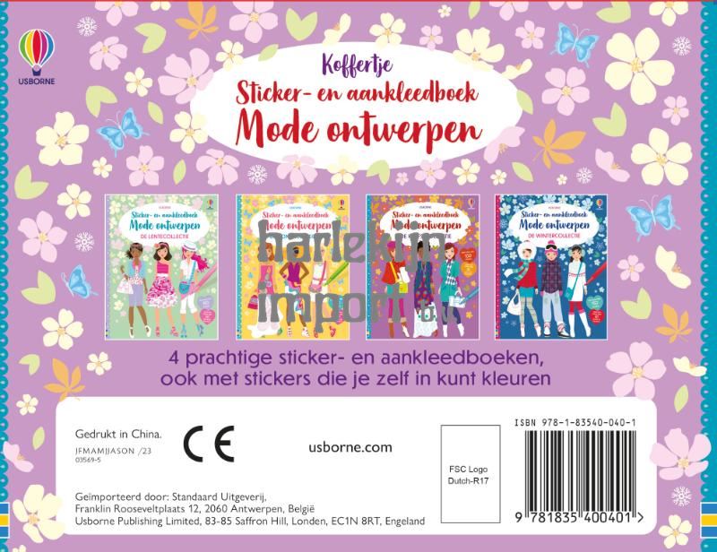 Geschenkdoos in de vorm van een koffertje dat vier boekjes bevat: lente-, zomer-, herfst- en wintercollecties. Met meer dan 550 stickers, waarvan 200 zelf in te kleuren zijn, kunnen modeontwerpers in de dop zelf outfits samenstellen. Het koffertje heeft een praktisch handvat om het mee te nemen.