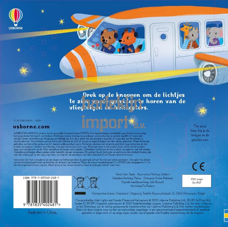 Van een ouderwets vliegtuig dat opstijgt tot een helikopter die over een klif scheert: in dit boekje vind je allerlei spannende vliegende machines… en als je op de knop op de bladzijde drukt, hoor je ze en gaan de lichtjes aan. De grappige dierenpiloten laten een watervliegtuig veilig landen, sturen een groot straalvliegtuig door de wolken en een stuntvliegteam laat een spectaculaire show zien.