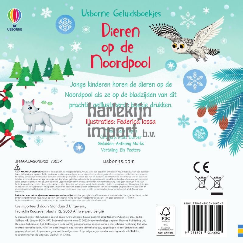 Jonge kinderen horen de dieren op de Noordpool als ze op de bladzijden van dit prachtig geïllustreerde boekje drukken.