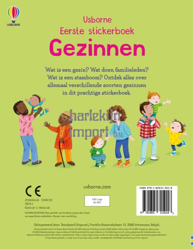 Kinderen maken kennis met allerlei verschillende gezinnen en families: ze leren hoe gezinnen kunnen zijn samengesteld, waar ze wonen, welke feesten ze vieren en wat ze samen doen. Stickerboek dat fantastisch is voor het versterken van de fijne motoriek en uitbreiding van de woordenschat. Met verschillende soorten gezinnen, maaltijden, huizen, feesten en stambomen.