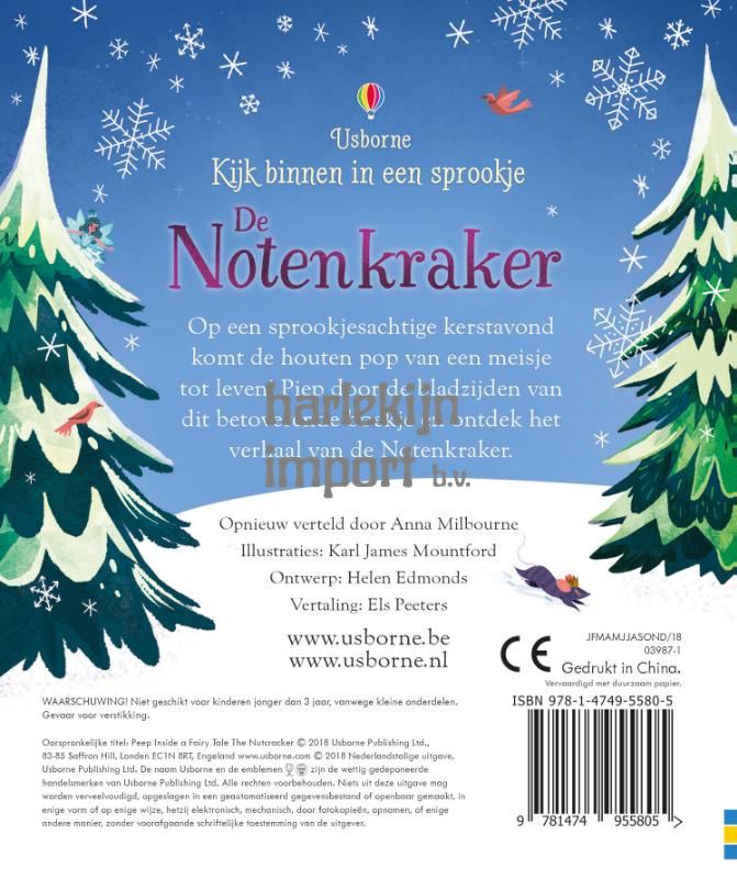 Het klassieke verhaal van Clara en haar Notenkrakerpop, door de heel fijn gestanste bladzijden met doorkijkjes, de sneeuwvlokjes en het toverachtige snoepjeskasteel volledig in kerstsfeer. Jonge kinderen zijn dol op de kleinste details van dit boek, zowel in de tekeningen als in de doorkijkjes en de flapjes. Ook heel geschikt om samen te lezen.