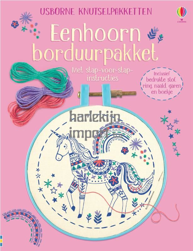 Dit pakketje bevat al het nodige om een magische eenhoorn te borduren: een stevige opbergdoos met borduurstof in 100% katoen, een borduurraam, drie kleuren borduurgaren, twee naalden, een draadinsteker en een stapsgewijze handleiding.