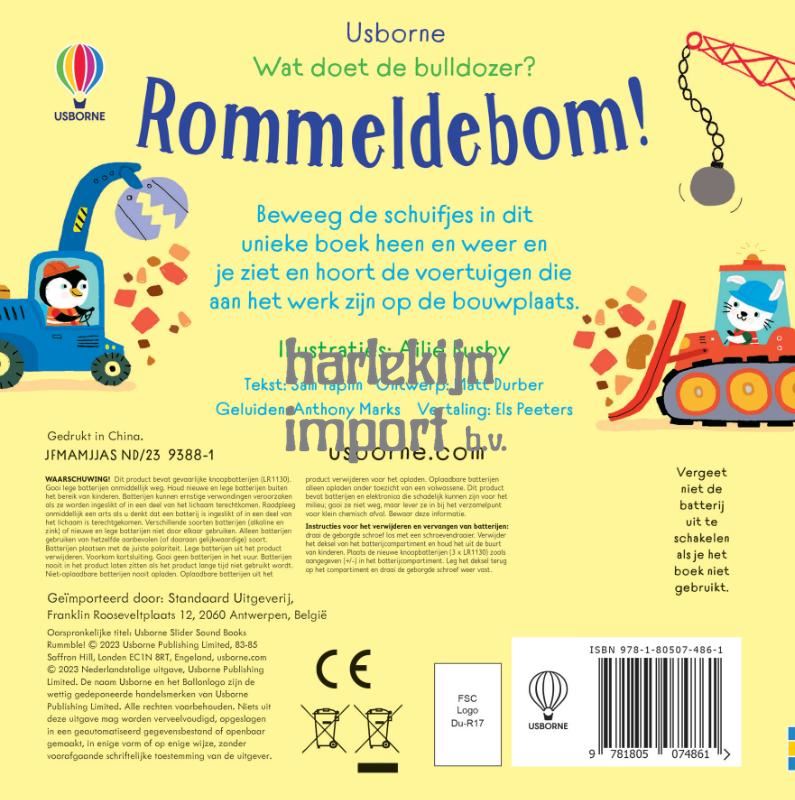 Duw de schuifjes in dit boek naar links en rechts om de geluiden van de bouwplaats te horen. Elk schuifje laat twee geluiden horen - duw het de andere kant op en je hoort en ziet een ander voertuig. Een boekje dat verrassingen prijsgeeft als kinderen de schuifjes bewegen. Geïllustreerd door Ailie Busby.