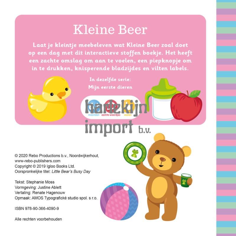 Laat je kleintje meebeleven wat Kleine Beer zoal doet op een dag met dit interactieve stoffen boekje. Het heeft een zachte omslag om aan te voelen, een piepknopje om in te drukken, knisperende bladzijdes en vilten labels.