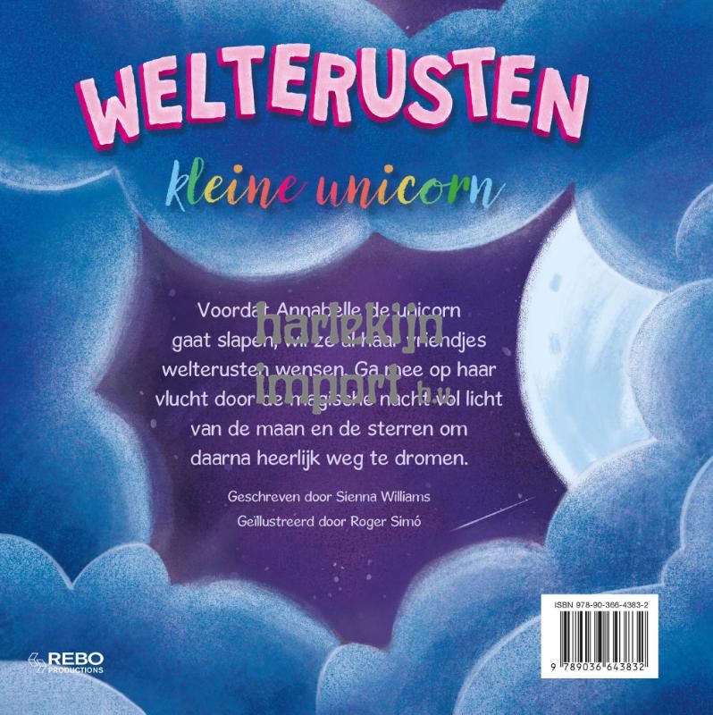 Voordat Annabelle de unicorn gaat slapen, wil ze al haar vriendjes welterusten wensen. Ga mee op haar vlucht door de magische nacht vol licht van de maan en de sterren om daarna heerlijk weg te dromen.