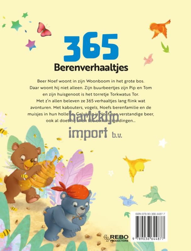Beer Noef woont in zijn Woonboom in het grote bos. Daar woont hij niet alleen. Zijn buurbeertjes zijn Pip en Tom en zijn huisgenoot is het torretje Torkwatus Tor. Met z'n allen beleven ze 365 verhaaltjes lang flink wat avonturen. Met kabouters, vogels, Noefs berenfamilie en de muisjes in hun holletje. Gelukkig is Noef een verstandige beer, ook al doet hij af en toe onhandige dingen...